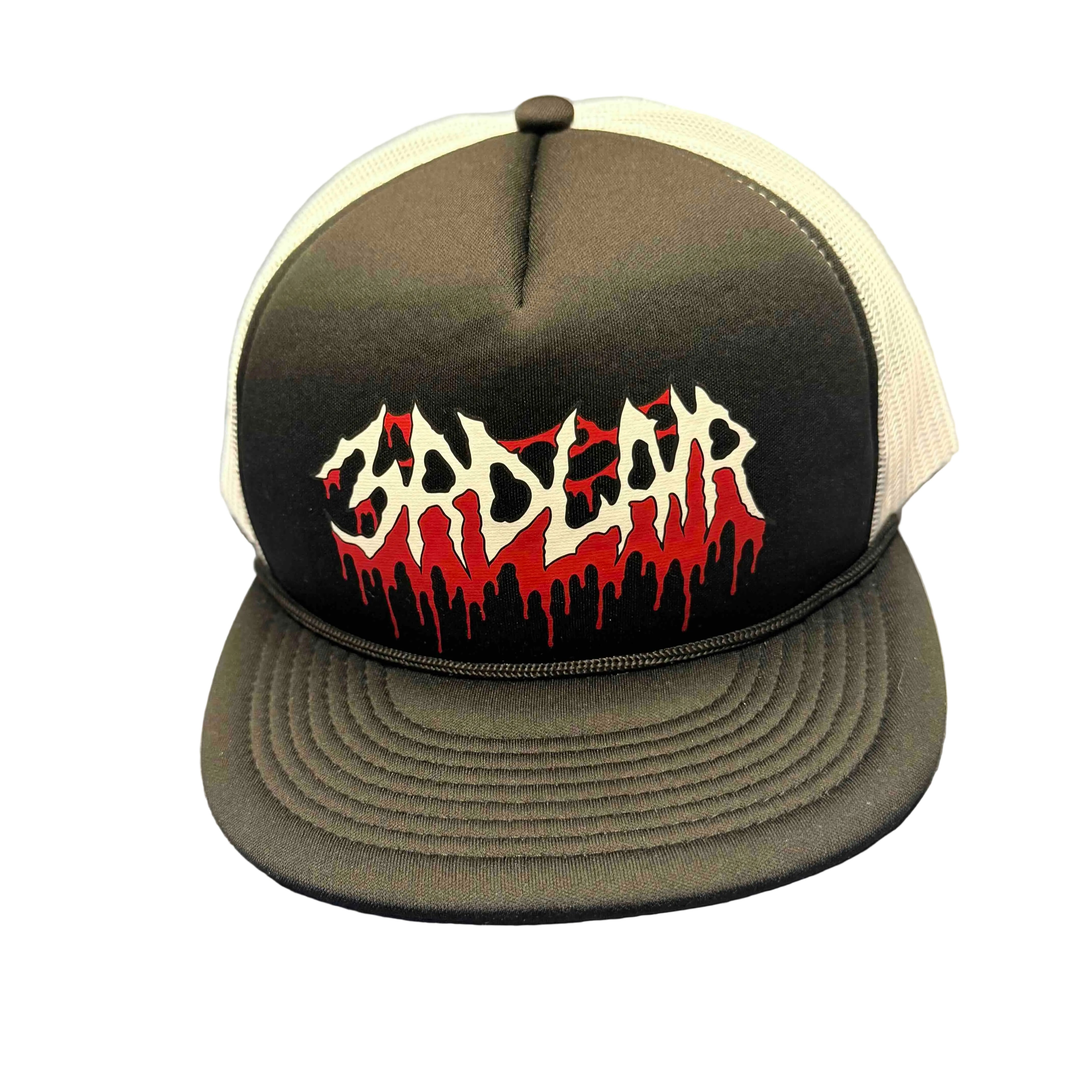 3rd Lair Metal Font logo printed on flat bill, foam trucker hat.